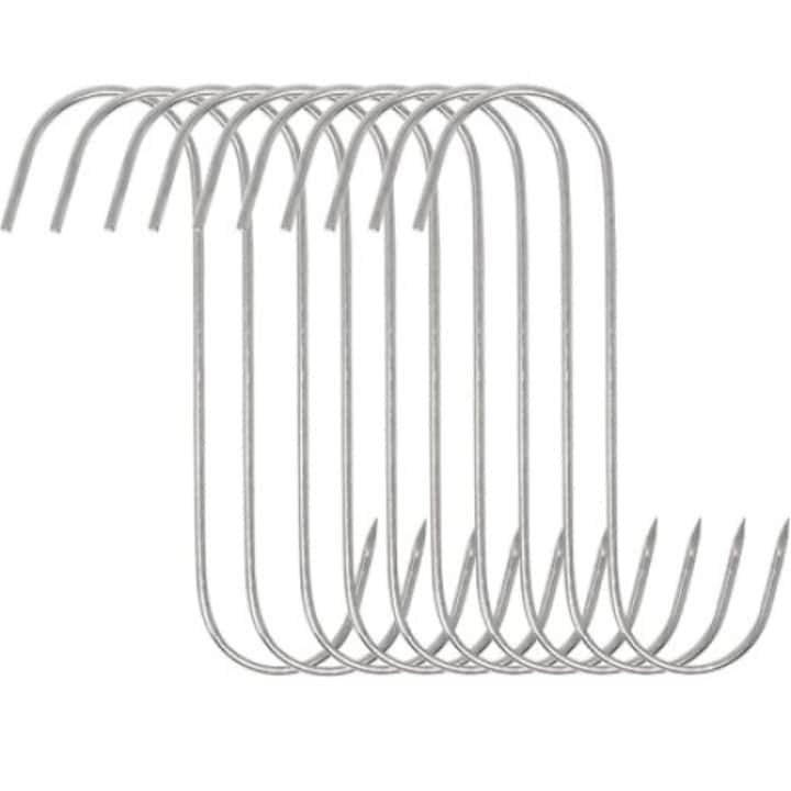 Setul de 10 cârlige tip S din oțel inoxidabil este alegerea ideală pentru măcelării, abatoare, gospodării sau pasionații de preparate tradiționale. Realizate din material inoxidabil de calitate superioară, cârligele sunt rezistente la greutate și la uz intens, având o durată lungă de utilizare.